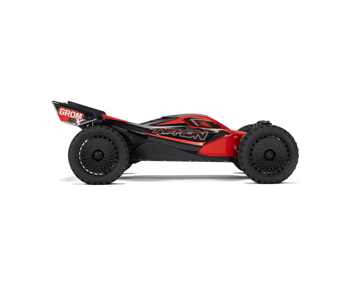 The ARRMA TYPHON GROM 223S BLX is a compact yet powerful small-scale buggy designed for thrilling off-road racing. It features a durable, enclosed drivetrain with metal gears and a Spektrum 4500Kv brushless motor that delivers strong all-terrain traction and speed. The innovative snap-on body design and factory-finished look make it easy to set up and run, while the Spektrum SLT2 transmitter offers adjustable power limits for safe skill-building. Complete with a battery and charger, it’s ready to go right out of the box.